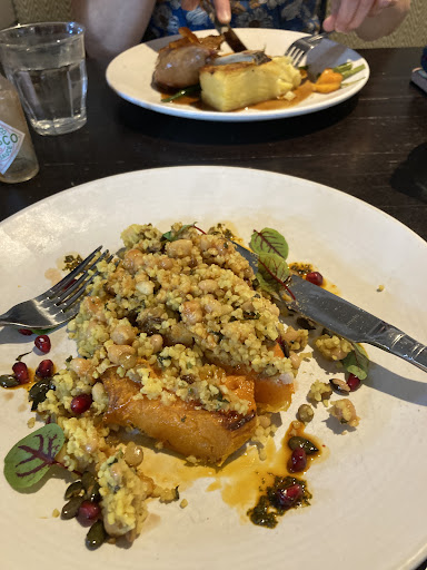 Read moreWe arrived 15 minutes early for our reservation and were told that although our table was ready, they wanted to stagger diners so we were told to go to the bar. We ordered a rum and coke and the salted caramel espresso martini. The espresso martini definitely tasted like a regular espresso martini with some salted caramel Popcorn on top. However, I love espresso martini's so I was good! We were seated at our table by 19.15, however the service was fairly poor. We had to flag our server down to take our food order, only to be told that the dish we wanted to order was unavailable. I ordered the chicken roti, the chicken was dry, but it was still flavourful and the vegetables and mash potato it came with were delicious. I ordered the cheese for dessert and has a glass of piquepoul to drink. I love the interiors at this place, it is beautiful. And this wasn't my first time coming here. However, I must say the service let this place down. I had to flag our server down to take our food order and then our dessert order and to ask for the bill. There was no attentiveness whatsoever. However, we could see other tables being looked after so I'm putting this down to an issue with our server. I will go back to this place, I'm just not sure when. For two mains, two desserts and two drinks including service...