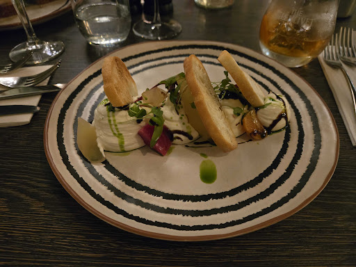 The design and ambience of Brazz is lovely. Beautiful decor and lighting. On the other hand the food…. I cannot comment for non vegan food but paying £18 for a single courgette fritter the size of a ping pong ball and half an uncooked courgette (complete with stalk) sprinkled with pea shoots and a balsamic glaze is simply not cool. It didn’t come with any substantial side, no protein, or carbohydrates. Simply half a crunchy courgette with a small fritter (which was actually very nice). Perhaps make the fritter the main and the courgette a side, roasted with spices? The dessert I was grateful to see- a plum cheesecake! But no. It was a raw yoghurt / granola tasting breakfast bowl that cost £10.