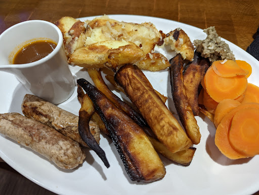 Read moreWith its great location we expected this to be a nice place to eat. Came in on a Sunday evening at 8pm, as a sign outside indicated that seagulls might dive for your food we headed inside - also driven by the fact that a lot of empty tables outside had glasses left on them. Inside was a sign pointing where to wait if you wanted to be seated. So we waited, and waited, and in the end had to flag someone down. We were told then to find our own tables and weren’t given any menus which we had to go back for. After looking round at a number of empty reserved tables we found one big enough that had been cleaned….. or cleared should I say. Food all over the floor was so disgusting I couldn’t sit there. We walked around the pub to another area and found one where someone’s dog in a pram was right on the end of the table to had to sit there, plates eye level with a dog. While looking for a table we walked past trays full of dirty plates left on the side, next to tomorrow’s breakfast prep for the morning. The kids meals came out pretty ok. We ordered a sharing platter between 2 for some of the adults and I wouldn’t go as far to call it a platter as it wasn’t particularly big. All of it was cold or tepid. Only the mushrooms which were full of water could be considered warm. You also don’t get given plates to share this onto, so mushroom water all over the table! The onion rings tasted funky, like they were old or maybe had been frozen badly. Neither of us could bring ourselves to touch the very dry looking chicken wings. Unlike in most establishments when waiters bring food to you, they bring it round and place it in front of the person who ordered it, but here they stood in one spot at the table and just held out each plate for us to take. Would...