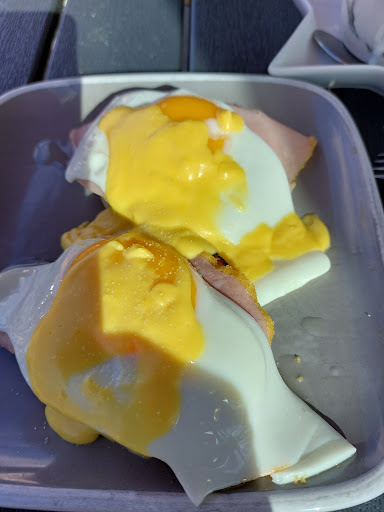 I was shocked for what I was served. 3 dry warmed pancakes. One of them was burnt so placed at the bottom of the stack thinking I wouldn't notice. 3 thick rashes of backed bacon not the expected streaky for this kind of dish. Then rather than serving maple syrup as advertised i was given treacle!! It was awful.
