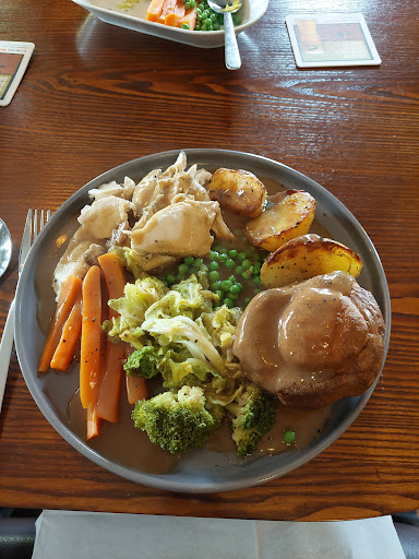 Looked nice but meat very thinly sliced potatoes were seasoned and well cooked veg was green beans, cabbage and carrots again no seasoning. Gravey was thick and plenty of it but chicken even for the lamb and beef dinners Also no stuffing with the chicken and a slight hiccup with the Yorkshire puddings due to no fault of the staff, however homemade fluffy hot Yorkshire puds arrived.