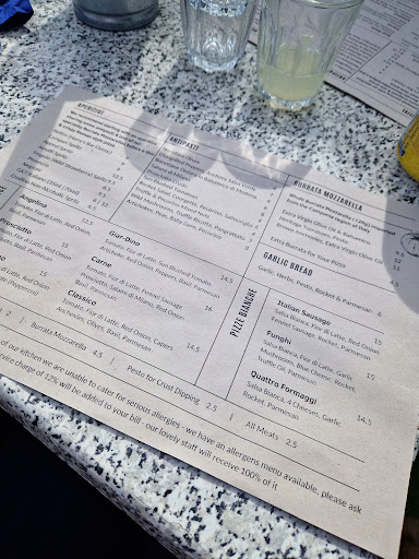 ย ย ย Read moreI feel like this visit was a bit of a poor experience overall. The service was pretty bad. The drinks took a long while to come out. The menu was very limited but we opted to share a mozzarella with pesto and tomato. This was expensive at ยฃ12, but was truly amazing and just like the incredible fresh cheese I have had in Milan - 5 star. The pizzas were around ยฃ18 and arrived in o.k time (the restaurant was pretty empty) but 1 pizza was wrong so my daughter had to wait for another with the correct topping for nearly 10mins. We asked for extra water on the table to be replenished but that never came. We asked twice for some grated mozzarella but we're halfway through pizzas before that turned up. The pizzas were OK but not at all a show stopper. We found them to be over-cooked on all 4 pizzas, the crust being hard to even break in the mouth. We didn't have anything else but thought 4 drinks, 4 pizzas and 1 starter was expensive for our overall eating experience. The service charge(10%) was added so the bill came to just over ยฃ100. I would not...