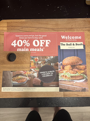 Read moreBull & Bush is a really nice place to go for a meal with family. It's children welcome. They offer a great selection of food, drinks and puddings for an unbelievable price. It's great to find that you can get cheaply a very tasty, fresh prepared meal. I loved my lamb shank. My children had the fisherman feast to share and my wife had a tender stake. Everything was cooked as we would expected and was delicious. We've washed it down with a pint đ» of a local ale and cider and we paid just under ÂŁ40. The selection of local beers is very good. Many bar games with a pool table included. The staff was very friendly and helpful. The waiter came few times to ask if we're satisfied. Overall the service was excellent. Another very important factor is that the Bull & Bush is within a walking distance from many hotels and guest houses so even the bad weather can't stop you from having a good meal and pint. Very highly...