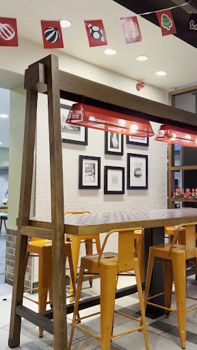 The food isn't good value. Service wasn't quick. The food was awful. The buns were sweet and soggy. Onion rings had no flavour. Nothing looked like the picture and seemed a lot smaller than promised. The milkshake machine was broken. Nearly every drink available was diet. Every burger appeared thrown together with about as much care as a 1970s Austin Allegro on Friday at 4.30pm. The staff looked bored and uninterested.