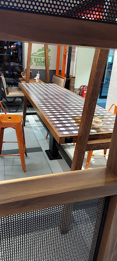 Not a single table had been cleaned and it wasn't busy. Seats were covered in crumbs and discarded chips, there were wrappers on the floor, the bins were overflowing.