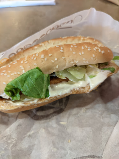The food was okay, but service not great. Waited over 20minutes for an order after a 12hr shift to then be told I couldn't sit in and eat as it was closing in 10 minutes. Took my food home to discover they'd missed the added ingredients off my burger that cost extra and also missed the standard onion, lettuce, sauce and tomato. Dips were forgotten too which were an additional cost. 2nd visit a member of staff was serving wearing a ripped black bin liner and no hat - I mean I love crafts and it was a great bit of creativity but maybe not the most reassuring display of food hygiene practice? The self service drinks machine only had full sugar pepsi working and the frozen drinks machine was broken along with all but 1 self ordering screens. On a separate visit all staff were chatting behind the counter for some time before I could get their attention which is fine when quiet but still doesn't appear very approachable. Once again there was limited soft drinks in the self service machines available.