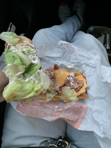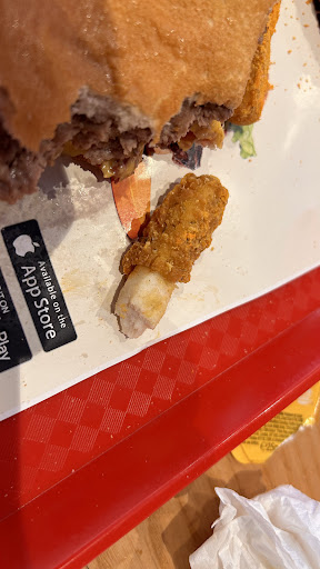 THEN when I was given my food and set off on my journey again, to my absolute horror, hairs all in my fries, every other frie had a hair on it. Given a vanilla milkshake instead of chocolate one too. I’m not done yet… to top this all off I noticed they had forgot to put the chicken in my chicken royale. Literally the main ingredient, how does someone even do that?? Forgetting the additional extras like sauce and stuff I understand. But the chicken… in a chicken burger?? What are you smoking! It wasn’t busy at all it was basically only us in there. Absolutely mental, hire better staff Burger King!!