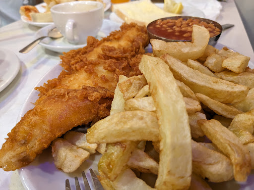 Just ate here and it was a hilariously poor and bizarre experience. After waiting outside for 5-10 mins for a table to be cleaned we were halfway to being seated when we then had to wait next to it while the owner went up the loft. We then got sat at a dirty table; when my wife pointed out to the waitress that there was used gum on it we were told âIâll get you a napkinâ like it was to be expected!!! (The napkin never came). We ordered for 2 adults and 2 kids. The drinks came, mine was wrong but I let it go and my sonâs milkshake was deemed âgrossâ. While waiting on food to arrive we were entertained by a literal builders bucket of dripping batter being walked through the middle of the restaurant, along with buckets of chips etc. Food arrived, my sonâs burger turned up in buttered sliced bread because theyâd run out of buns (no warning or offer to swap) and my daughterâs pizza was a microwave style one and had been cooked to the point the crust couldnât physically be cut. We didnât get given cutlery and had to ask. The bread and butter for our meals never arrived. On eating the chips were ok, fish was soggy and the curry sauce was laugh-out-loud bad (imagine congealed chicken gravy with curry powder and currants). School cafeteria style sachets of sauce, the tartare was especially bad. On using the salt and vinegar the bottles were filthy and slimy. When we went to pay I was asked how everything was and was honest, the two waitresses seemed to find it amusing however the owner overheard. To her credit she couldnât have been more apologetic and halved our bill and had explained that she was training new staff. Unfortunately it seems like the sort of place surviving on its location and the 1-off visits from tourists/passing trade. On the plus side the pizza place up the road we went to for the kids after is...