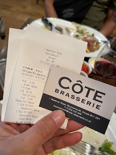 WITHOUT DOUBT BEST RESTAURANT & BEST MANAGEMENT AND TEAM AND LOVELIEST FOOD CURRENTLY IN CENTRAL BOURNEMOUTH BY FAR We visited Cote Brasserie in WESTOVER ROAD BOURNEMOUTH this past week, to celebrate would you believe my 78th birthday! I had much to give thanks for having precisely 9 years earlier to the day, {again my then 69th birthday!} been diagnosed with pancreatic cancer and given 6 months to live, yet here I was celebrating 9 years of life that I never thought I would see, with my sassy beautiful half Swedish wife Sue. Having been privileged to eat across many years some of the UK`s best restaurants, Cote Brassiere in BOURNEMOUTH excels, AND SOME! Exceptional food, great chef that day who was charming, and top management. It really is not fair to mention anyone in particular there but I will, as the ENTIRE TEAM, + THE 2 MANAGERS who we met on Tuesday morning 29th November, were absolutely all outstanding and a total credit to the high standards Cote Brassiere try to achieve every day. However, ONE GIAN FRANCO who looked after us entirely for our two-hour lunch time visit was simply incredible. Throughout our stay, we were superbly looked after by GIAN and supporting team. Gian was simply charming and went way above the norm, out front, and he most certainly made a celebration day and lunch on the exceptional. His people skills are a great asset to the company and he should be congratulated. Both the front of house managers also were exceptional. As for our two courses each chosen off the al a carte menu both were exceptional. The atmosphere and cleanliness at this establishment are appealing and warming as a patron whilst eating there.