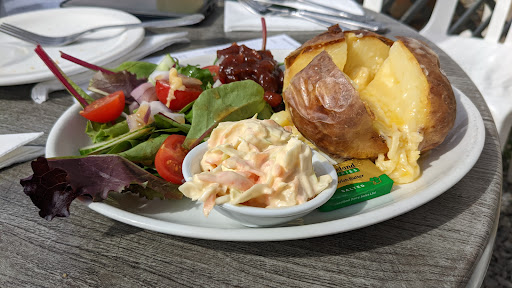 Read morePopped in for lunch before heading into the water gardens and so glad we did. We had jacket potatoes with cheese and chutney, with a side of coleslaw and salad, and a coffee and walnut cake too.