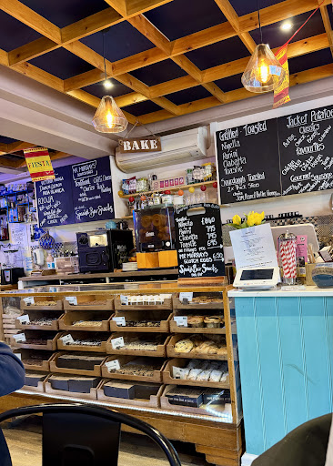 Read moreCan’t believe some of the poorer reviews on this lovely little place - apart from the fact that it’s friendly, lively, busy, serves wonderful coffee (Kickback?) made with care… and has a huge selection of cakes and pastries to try, they are also licensed, do lunches, have an outside eating area ( undercover I think) and, make lots of dogs incredibly welcome out in this area. I really think that before people make the effort of posting a review on the internet, they should take a couple of minutes or so to mention their little gripe with the staff who can then probably rectify any perceived oversight and make everybody’s day a lot better! A lot less bitter. If £3.80 seems a lot to you - go out, buy the freshly ground coffee, the range of milks, the chairs, the tables, the rent, the staff, the staff holidays, the electric, the VAT, the music license etc etc etc and we can all come round to yours and hog a chair for a while and see how much money it’s worth then! 😂 And have it there, ready and waiting, up to scratch, everyday…just in case we’re coming! Just remember, businesses are people too! BTW husband loved his small, black coffee, and I adore my latte - but, the cinnamon buns need to be banned …far...