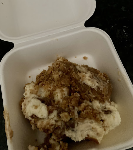 Also, had I not pointed out to the staff member please don’t put my hot potato on top of the cheesecake already in the bag, she would’ve done … But luckily I stopped her in time. Not that it would’ve made a difference looking at it I suppose.
