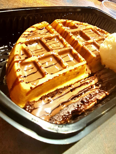 The Waffles: Overall was ok. They were overcooked in my view as they were too crispy on the outside, and there was not much moisture left inside... Came with ample sauces... but also had a side of chocolate brownie and banana pieces, which is a good touch... the ice cream had a stretchy texture, which is different but was ok...