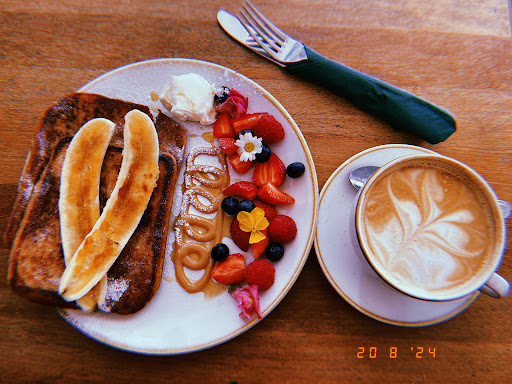 I ordered a latte and French toast, and I was impressed by how quickly they arrivedâboth within 10 minutes. When the French toast was placed before me, I was truly amazed by its presentation. It was almost too beautiful to eat! The dish was adorned with fresh, sweet strawberries, raspberries, and blueberries, all of excellent quality. The caramelised banana was a delightful surprise, with a thin layer of burnt sugar that added a tasty crunch.