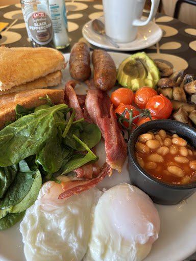 I heartily recommend the ‘Leaner Marina’ which is a less carby full English inc spinach and avocado. Lovely and colourful, and not at all greasy.
