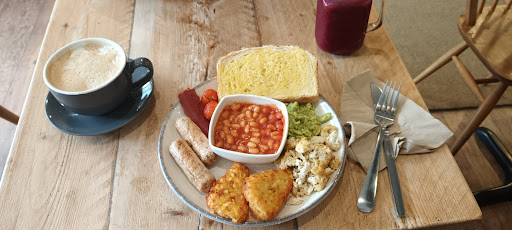 Decided to try this spot as it's the only place on Queens Road I haven't been for breakfast. Ordered a Biscoff Latte and the vegetarian breakfast, my partner got a berry smoothie and the breakfast burrito. My latte arrived after 5 minutes, without a spoon - which I realised I needed when I got to the bottom of it and saw just a chunk of what I assume is biscoff only slightly dissolved. Another 5 minutes later my partners berry smoothie arrived (no complaints on the taste of that, it was quite nice).