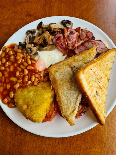 We were over from Belfast for the day for private business in Sheffield and I had plotted the route the previous week from Cairnryan and found that this was about smack dab in the middle of a 263 mile journey there and back. We arrived between 08:30 - 09:00 as we got out of the car you could smell a wood stove burning kind of smell, this is a good start before we even walk in. There was one lady that greeted us right away, I naturally said a few pleasantries and ran to the bathroom (haha), to which I must say were cleaner than some hotels I have been in. Ordered a small fry without the beans (I don't understand beans or chips as part of a fry-up, just feed me ) I digress a little, my wife had eggs on toast. We were very happy with our food. The lady who served us had a few chit chat words with us as to our day not in a nosey way just kindly conversation also, my Belfast accent kind of sticks out a wee bit. Just as we were leaving and went to pay the bill, I spotted some coconut covered cake with jam and a dribble appeared out of the side of my mouth, secondary school dessert on Friday's with custard. It was 45 - 50 years ago and I felt like it was last week :}. My wife saw me and laughed, she knew. So we said " We will be back " on our journey home for some cake.