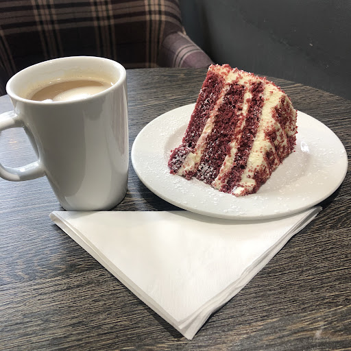 Large portions of cake! I was very impressed with the big wedge of velvet cake I had on a recent visit. The Americano I chose to go with it was lovely. I also recommend the vanilla latte, which I've had several times in the past. I've been visiting here for as long as it's been open, which must be well over a decade. The service is always friendly and efficient. The cafe is clean and tidy, I saw the waiter clearing and cleaning tables immediately after...