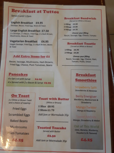 Caffe Tutto is my favourite place in Paignton. Devon for coffee, cleanliness, attentive happy Staff and dog friendly, that is until todays visit, Sat am the 11th Jan 2020. The cafe was not busy and two Staff were on duty but the usual friendlyness was missing. Do not misunderstand, they were not rude, but certainly seemed to be bored. Our order was misunderstood and a toasted panini served without a side salid was very short on the cheese and pickle filling. The gents toilet was in need of a good clean and the toilet brush stank. One cappuccino was fine but the other was very strong, watery rather than milky and had a strange taste. That could be either a machine or operator problem. Had this been a first visit I would certainly make a note to never return. As it is, as a fairly regular, satisfied customer, I will mark this as a one off and hope the owner/s read this and take...