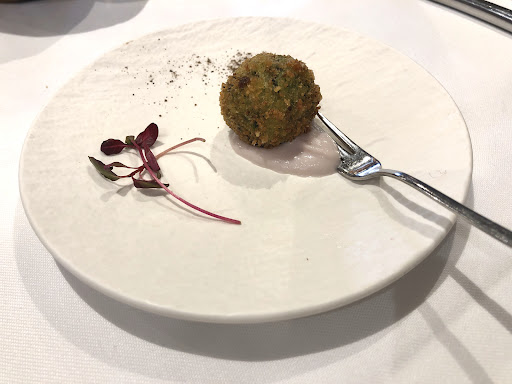 Before we even started, the bread was soft, springy and perfectly seasoned, served with olive oil and balsamic vinegar. The olives were the biggest and juciest i've ever seen. We ordered the courgette flower salad, scallops, grana padano cheese flan and beef ragu pasta to start with. All were delicious. For main, the truffle tagliolini with butter sauce was super decadent and packed with flavour. The tuscan seafood stew, calf's liver and stuffed chicken breast were all enjoyed and shared bites between ourselves. For dessert the chocolate fondant was perfectly cooked and not too sweet/ not too bitter for me. The Bomboloni looked like churros but with the texture of a doughnut and we loved the dipping custard and jam. Vanilla pannacotta and roast peach were thoroughly enjoyed as well. The wine was great, service was warm and efficient. Giancarlo himself greeted us and even gave a bottle of olive oil with his face on it :)