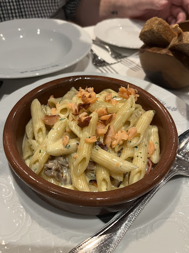Pasta recommendations (my partner is pescatarian): penne with hot smoked salmon flambĂ©ed with chili vodka and cream (served with a chili vodka shot!), Caldesiâs famous seabass ravioli in a butter and lemon sauce, fettuccini with wild mushrooms.. all stunning!