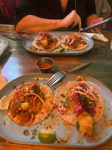 Yesterday, my mum was visiting so I took her for dinner. The music is great, a bunch of pop and alt classics, mostly from the 90s/00s. The servers are super helpful and welcoming. We ordered: ⢠Life Changing Fish Tacos: 9/10. I had to order these again. They were indeed life-changing. The fish was cooked perfectly, it was crispy but also fresh. Goes perfectly with the pickled cabbage and salsa macha. Would be even better with some avocado or red onions. ⢠Chicken and Chorizo Tacos: 10/10. Huge chunks of chorizo with pulled chicken ik chipotle and tomato, basil aioli, salsa macha, pickled onions and avocado. Just amazing. ⢠Tacos Cochinita Pibil: 10/10. Slow cooked pulled pork marinated in achiote, lime and orange juice, ancho chile and pickled onions. The flavours are so well balanced. You can taste the orange but itās not too much. The pork is so juicy.