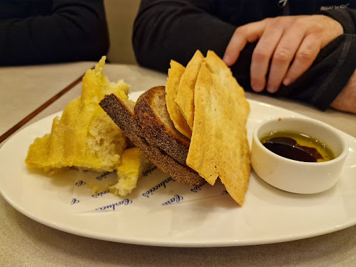 There are two other dishes to mention - the mushroom risotto from another diner was quite bland (from the mouthful I tasted) feel free to play with the seasoning a bit! And my partner ordered the assortment of breads which was an absolute mountain with the smallest amount of oil/balsamic. No negative points for that though - we would have asked for more oil/balsamic but I had some of the bread with the arrancini tomato sauce - it just seems a weird way to present the dish.