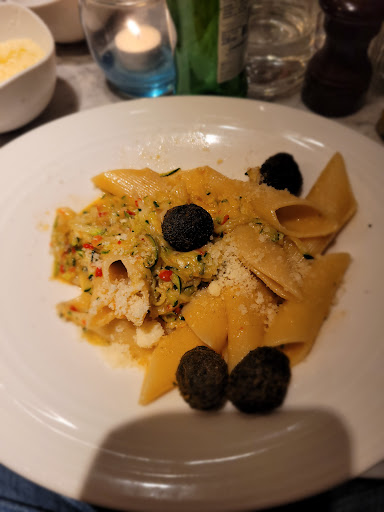 Read moreEnjoyed a very pleasant lunch at Carluccio's on a day trip to the Christmas market. The restaurant is centrally located at the street level of one of the Bridge Street Rows, in a lovely old black and white Tudor style building. Inside, it's spacious and clean, with a stylish contemporary decor and colour scheme, modern artwork on the walls, and comfy leather seating. You have to climb a lot of stairs to get to the main toilets, but there is a wheelchair accessible toilet on the ground floor. The atmosphere was relaxed and welcoming. I was offered a glass of water to drink with my meal. The well stocked bar had a great choice of mainly Italian beers, wines and liqueurs. Authentic Italian cuisine that included freshly baked focaccias, a tempting selection of antipasti, pizzas, and pasta dishes. There was also a children's menu. I chose from the Christmas set menu, two courses for £24.95. The duck arancinis with nduja mayo were hot, crispy and flavoursome, and the pork saltimbocca in a white wine sauce, served with rosemary and garlic roasted potatoes and rocket, was well cooked and made a delicious main course. Excellent red wine too. Did not have a dessert, but they looked very good! The staff were polite, friendly and attentive throughout my meal, and service was very efficient. There were also some nice Italian food gifts to take out, including pasta, olive oil, wine, and large panettones. Overall a delightful lunch experience!...