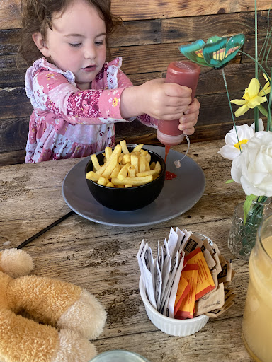 Though we would try this for lunch on Friday it was busy when we arrived at half 1 so a short wait for a table but the staff were friendly and helpful and turned the table over super quick, then we had the choice for what to eat! With cooked breakfasts, jacket spuds and a range of home made meals there was definitely something for everyone! After recommendations from the staff as we didn't know what to get I went with the home made chicken nuggets, wedges and beans and the OH went for the triple cheese chicken burger! My nuggets were tasty but 'different' as they had been made also with potato and onion, so it took a bit for my brain to get over the texture but they were tasty. I did however have food envy with the husband's burger! A large chicken breast which we then found out had been coated in crushed Doritos to add to the cheese flavour it looked amazing and the husband says it tasted that way too!