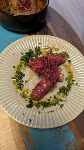 Just got home from a fantastic evening here and had to write a review. We were warmly welcomed and shown to our table upstairs. I was really happy that we had a window seat in the corner overlooking the view as I was hoping to be seated upstairs. Absolutely adored the vibe of the venue and commented on the unique lighting which is made of recycled bottles of alcohol. Presentation makes an atmosphere and I loved the set up and even the colour of the plates. Staff were really friendly and answered any queries regarding the food. They were clear with how tapas works as we had never been here before or to a tapas venue. I loved that the food came out when it was ready and got to sample lots of little dishes. I tried two different cocktails and have the say the presentation of the Summer Surprise was exotic. It certainly made me feel like I was on holiday in Spain, especially with Spanish music playing in the background and the added bonus of the sun shining through the window. I have purposely left reviewing the food to the end as I was blown away by the variety and flavours of the food. The olives and the octopus were my absolute favourites. I had not had octopus before and it was cooked to perfection. I have had many types of olives before, but whatever was on these ones made them the best olives I have ever tasted. I usually prefer pitted olives, but the taste of these far outweighed having to eat around the pit. I cannot wait to go back and try them again and with some different tapas. Between the two of us, we opted for 3 tapas each and we left happy, fat and full. Thank you so much. I am really happy that I've found another eatery that I love and will want to return to...