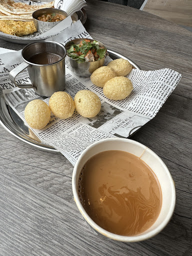 I've been here twice now, and the first thing you notice is of course the interior. It's very simply done but very tasteful and relaxing, inviting you to sit and share a meal with friends, or bring your laptop and get some work done (there are charging stations in some parts of the cafe). The service is friendly and helpful, never had a problem with the staff. The first time I ordered some wraps, and I wouldnt recommend any of them, as they were fairly mediocre. I'm not a chai drinker so I cant comment on their tea. Their samosa chaat is delicious. The second time, I ordered a vanilla capuccino but they gave me a caramel capuccino instead, which of course was too sweet for my liking. Their chicken tikka wrap was disappointing, But the biggest disappointment was the omelette beans paratha breakfast. It's fairly expensive, and what you get is bland supermarket parathas instead of home-made ones (I had high expectations after having homemade ones at Naashta), a pot of beans which I could tell were from a Heinz can, but with added masala to disguise that fact, and a fairly decent omelette to which they add 30p for every item you add to it, eg 30p for onions, 30p for tomatoes, 30p for chillis and 30p for cheese –– all of which should come as standard in a desi omelette anyway. So far, I can only recommend the samosa chaat as its a good price and tasty too.
