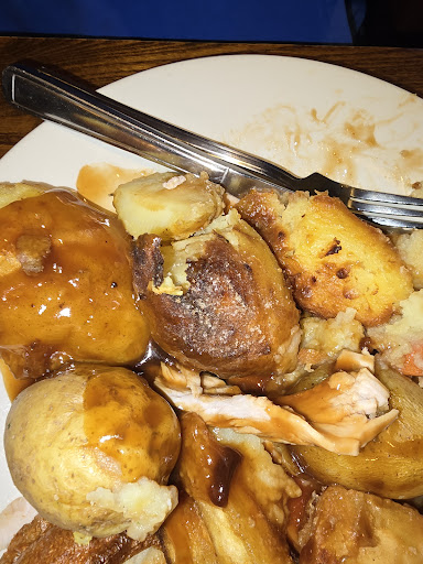 Been coming here for 18 months, most weeks. Since around November the carvery has gone right down hill. Burnt food, hard burnt roast potatoes, dried out vegetables and either sloppy wet or dried out mash! We stopped coming over December and January as it got so bad but we gave it another chance today and the only thing that has changed is the service from the waitresses has gotten worse. We weren't greeted and seated as usual as the waitress was chatting at the bar and we had no service check where we could have highlighted our issues. We weren't the only people who were unhappy with our food we heard a few complaints from where we were sat. Unfortunately we won't be coming back. On leaving the Waitress was outside smoking. The whole 45 mins we were there we didn't have one interaction with the waitress and it was no wonder we couldn't find her to complain.
