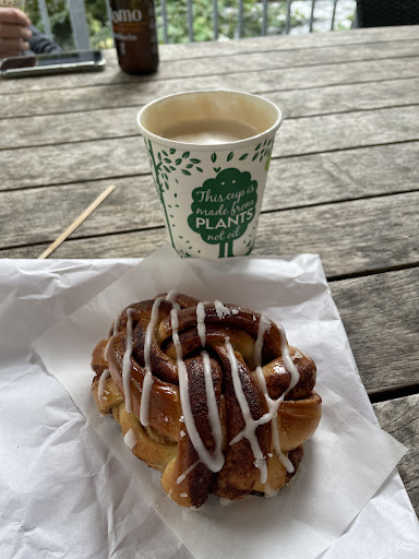 Absolutely an oasis for vegetarians! Great expresso, amazing jelly donuts on designated days, fantastic breads and pastry, and a great salad selection as well as many other dishes. Set on a beautiful river. You can eat indoors or outside. We go hiking and go back for our next meal. Yes, a bit pricey... and the bathrooms are definitely not adequate for the amount of people... not cleaned often enough. But we go for the excellent food and coffee. Nice little gift shop also inside the building for rainy days.