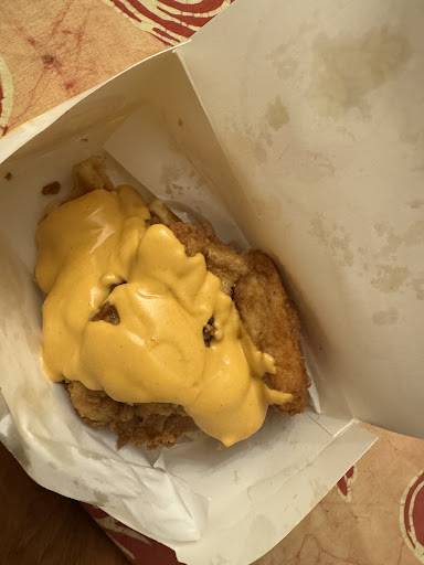 The first time we ordered it was very nice, a little bit salty for my taste but edible. Tonight it tasted as if someone had poured the salt pot over it, totally inedible. The man serving didn't seem to know what he was doing. He was putting in thighs instead of fillets and when told, was putting in something else which someone else had to tell him weren't fillets.