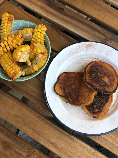 You can choose your heat level and I was glad we went wimpy with mild as it was just right. I love how you can mix and match and add on to your hearts content plus a big bowl of curry is only Ā£9 š±. But trust me maybe order about 5 Roti as youāll love them. And definitely get extra pumpkin fritters as dessert or their palate cleansing mango sorbet.