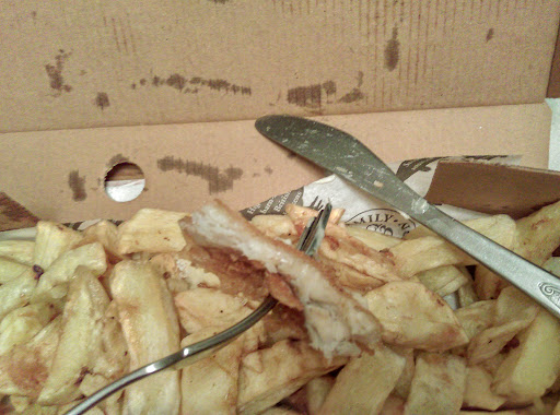 If I order Large fish and Large chips I dont expect you to pull the old, "Put the fish in the box first and sprinkle it with 6 chips con", that's not what I paid for. In fact, you should stop serving fish and chips in the box if you are going to scam your customers.