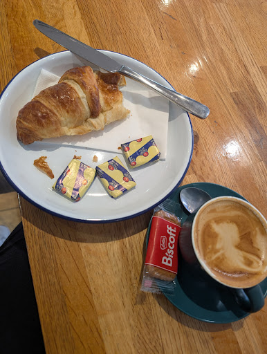Considering this is opposite a chain "Cafe Bar" this place proves its superiority by offering a friendly greeting, an excellent drinks menu and lovely choices in the "Light Bites" department. My usual go to of a skinny cortado with a plain croissant to dunk we're perfect. The coffee was well made in the most adorable cup & saucer, my croissant crispy (it was offered to be warmed but I prefer the crispy flakiness of a fresh on the day cold croissant).and served with lots of butter. The atmosphere was cosy yet relaxed and informal but most of all welcoming for a girl on her own (and I wasn't the only lone diner). The toilet facilities were clean and in good repair & clearly checked regularly too. Always an important consideration in a good business! This is clearly a well run business that puts quality, people & service before profit - unlike the bigger names - and my mid day treat was very well priced at under ÂŁ6. Thank you Coast Coffee, I'll be back - with...