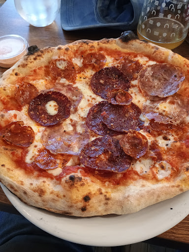 ย ย ย Read moreI was lucky to find this place on down time from The Purbeck Folk Festival. I actually ate here twice within a week - once as take out sitting on the benches and the second time sitting in the restaurant area. You have to have faith coming to the place as it is on an business\industrial area outside of Swanage main town and based in one of the units but you won't be disappointed. Inside the unit is a lovely restaurant (see the photos when you Google the place). There were tables available but I was flexible so recommend booking ahead. Staff on both occasions were friendly and helpful. There were quite a few tables occupied by either families or couples plus a steady flow of take away pizza being collected. Pizza on both occasions was lovely. The picture is of Charcuterie Meatfeast which was cracking. My first visit was the Pepperoni which was just as good. The kitchen is on view so I can confirm all freshly made and hand stretched plus a proper pizza oven. A real classic tomato sauce on a 24 hour proofed dough. Oh and the Sriracha Mayo was great for dipping the...
