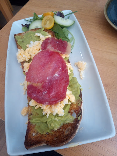 Stop in for the best coffee we found during our travels around Manchester and Northern Wales. If you're in the mood for something sweet, you'll have a hard time choosing between the Lemon Drizzle, apricot studded cake, bara brith, the light as air pancake - there were so many mouth watering options on the counter. Not to be outdone by their savory menu. We had delicious potato and leek soup with cheese toast. I'm coming back for more cheese toast. The staff were lovely and engaging. We...