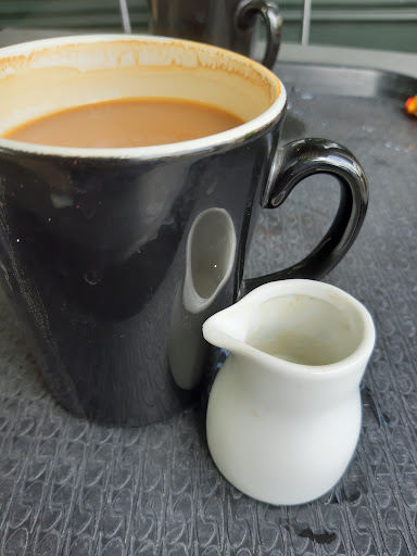 Read moreVery tasty coffee, nice to sit out in winter sunshine. They have 'made gluten free' items, but no guarantee of non contamination. This is too risky for a coeliac friend. A shame. There should have wrapped gluten free. NOT good enough. UPDATE 16/5/22. Ordered americano with cold milk. Noticed milk jug chipped, poured from it, then saw the jug was filthy dirty, to begin with thought it was a shadow. Then scraped through the grime with my finger nail! Brought it.to attention of waiter who was clearing tables outside (didnt even wipe tables). Enquired and told manager not in, so asked senior person to be told immediately. Turned out to be person that served me! They failed to come and talk to me. NOT GOOD ENOUGH. Hardly #1...