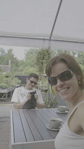 We were late for breakfast at another place in Langport and found this little gem of a place by accident, and we were delighted! We initially wanted to enjoy eating outside, which is harder to find that you'd expect 😅. This cafe is right at a garden centre so you're surrounded by fragrant blooms if you sit outside. It was so so lovely and peaceful. While the other place was noisy and busy, Corks was quiet, only a few other tables at 11:30am. We were greeted by two young gentlemens with a smile who provided excellent service (hubby and I both worked in 5* hospitality so we have experience! It doesn't take much but so many places miss the mark!) Coffee was delicious and the quiche was the best I probably ever had, so tasty and just the right texture. The only small criticism is for the bread in my hubby's bacon sandwich, we would have loved some crusty sourdough instead of the basic white or brown option. And before I forget we also met Hansel, the resident black butler kitty who was so cuddly he completely charmed us. He just sat in out laps purring the whole time! So this is your sign to visit Corks at Kelways, you won't be disappointed. There's also a tiny gift shop with handmade goods!...