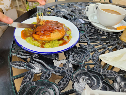 Had lunch at this inviting little café on a short visit to Helmsley. It's in a charming stone cottage just a couple of minutes walk from the castle, which you get a good view of from the outside tables. It's also very homely inside, with restful blue decor, and some nice plants and pictures. The banquette was comfy, and the tables and the café generally were very clean. I was given a really warm welcome, and the lady who served me was attentive throughout my lunch, checking that the food was just right. Good choice of drinks including coffee, speciality teas, and Fentimans traditional soft drinks. I ordered a bottle of dandelion and burdock, and it was a refreshing accompaniment to my meal. The menu is not extensive, but there's a nice selection of light meals including jacket potatoes, homemade soup, sandwiches and toasties. I chose the ploughman's lunch, and it turned out to be a real feast, with thick slices of good quality ham, a pork pie, two types of cheese, dressed salad, apple slices, pickled gherkins, chutney, and two thick slices of soft seeded bread with butter. Everything on the plate was fresh and tasty, and the portions were generous. Good value for money too. Would certainly recommend this cafe both for the food and the friendly...
