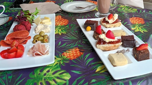 Firstly, the portion sizes were so small. For the savoury platter we had; a spoonful of hummus, two falafel, some chopped tomato, some mixed leaves, six small olives, two pieces of what seemed to be pepperoni, a few small pieces of cheese, and maybe half a slice of prosciutto ham. Secondly, we were not given what we should have received. We weren’t even made aware of the missing items. I had to keep asking and get the menu up on my phone. There was a major lack of communication from the staff. No bread or anything to eat the hummus with, no sausage rolls, list goes on.