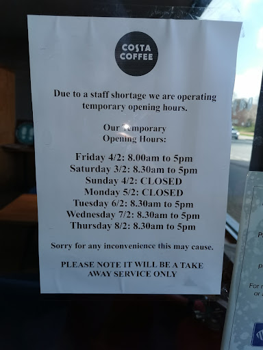 Read moreThree stars because apparently the staff terms are ok. Still however making the mistake of other coffee chains by overpricing by 30% which causes each franchise to be 90% empty 70% of the time. Also closing time should probably be 8.30pm if you are intending to make any profit after overheads. I resent inflationary behaviour like charging 50 or 60p for a bit of aerosol can cream which they didn't used to charge for and it's more than the wholesale...