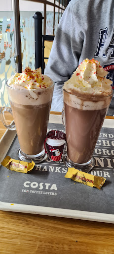Read moreCosta in tesco located in the back of the store with access via lift or stairs sits on the floor overlooking the store plenty of seating and table's with some having power points to change or run your phone / laptop, selling the usual costa pre-packaged snacks and fair coffee is made fresh to order and hot snacks are heated then bought to your table if eating in. Also has disabled accessible toilet facilities inside the cafe...