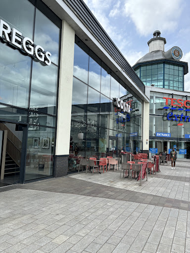 Awful. A brand new building, they had loads of flexibility on how to make such a large space great... and it's a shambles. The quality of the coffee/food/etc is the same as every Costa everywhere (and they are literally everywhere... just turn around in this store and you'll see another one! Not enough? Go to the drive thru, just a minute down the road!) The layout is atrocious, the entrance consists of non-automatic doors that require pressing a large button to open... this button is for wheelchair users for apparent easy access... yet I cannot understand how it is any easier than automatic sliding doors on sensors.... why is this an issue? Because there's insufficient space to queue, so people are often standing in the doorway, with the non-automatic doors repeatedly smacking them as they try to close. Also really stupid for both customers and staff carrying trays full of glasses and hot liquid... make them hold it one-handed as they try and push the button! Seen staff drop trays on more than one occasion and customers cream face first into the doors they expected to open!! There is no space at all for wheelchair users or pushchairs once inside, the queue 'flow' ends in narrow gaps with customers having to weave between tables to exit... hard enough on two feet, but with a chair or crutches? Impossible. As is the Costa way, insufficient or possibly uninterested, unmotivated staff, so the place is always filthy and tables left stacked with trays where people have moved them in an attempt to free space....
