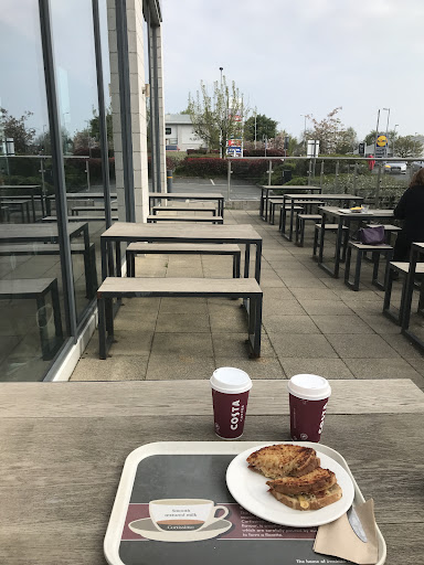 Read moreHonestly, I'd give no stars if I could. I go to Costa almost every day in Plymouth... Different stores each day. No problem. I am here visiting my partners family and they said that I could eat something from Tescos in there as they do all the time. I got something in Tescos as the food in Costa messes with my stomach and I was very hungry running very low blood sugar wise. I got mine and my partners drinks, this was a joke! 5 at taps to makeep my order as the clerk was too busy trying to make the drinks for the staff member who is there to make the drinks. The only reason she was going slowly is she didn't seem to understand what the till chappy was trying to do. I was then charged more than I should have been but didn't say anything... I just wanted my drink! It then took about 10 minutes for my drinks to be made because the girl started making the drink for the girl behind me because she was "in a rush". I finally got to my seat with a different drink entirely for my partner due to not having anything left from the other option... and we get asked to put our food away as they "do not accept it here" and we"could be asked to leave". Never will be returning. Never had such a horrible...