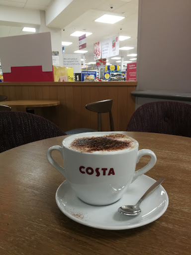 Read moreA busy place this morning when I had my spiced cappuccino and mince pie. The lovely Andrea served me and she always has a welcoming smile. The staff are very friendly whatever time you go in though. An excellent place for a coffee before or after your shopping in Tesco. It's just been refurbished and looks bigger than it was before. The large tables have been removed in favour of more regular sized ones. The lighting looks minimalist and industrial looking. Costa cups hang precariously from the mobile above some of the tables which is a complete surprise. The walls are adorned with new artwork giving it a fresh new look. A much better Costa than before and thankfully they've fixed that hole in...