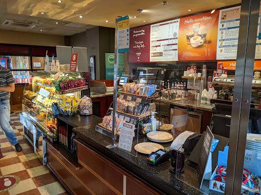 So, we stopped with my husband and my son to have quick coffee because we were travelling for long time, the coffee was fine, the staff however was very neutral if not rude I didn't even listen a thank you and a good bye from the 3 members of staff and they were just chatting and laughing..I am not against to chatting while at work because was not busy but I am against to rude staff, the one girl gave me the cups without any single word from her mouth and she turned her back to me talking with her colleagues like I never went..the price also was far too high from other costa shops as I paid £7.30 for a macchiato and a small cappuccino with caramel syrup.. I wish I would have stopped in another service but defienetely thid services will not be in my...
