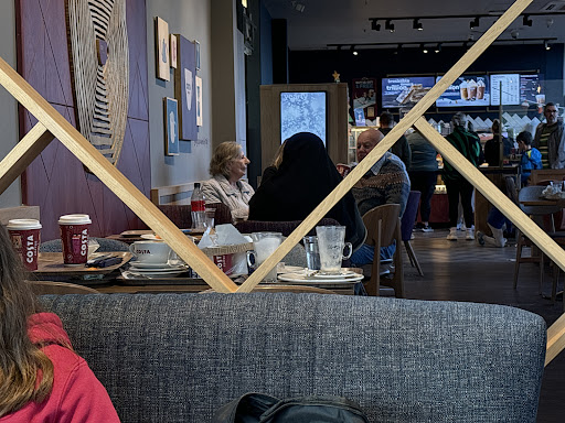 Today i went in this costa cafe. Well all regulations about covid19 , circuit for customers before to pay at till !! Good !! But staff members inside the service area and in the floor area without wear mask on !!! When this guys and their boss will understand that many people now in Uk lost their job for business closure for covid 19 because we can people doesn’t Wear on this mask and stop the pandemy .... Italy .France , Germany Swissland , and other cointries respect this rules in full FOR ALL !! No only custumers could be contaminated by virus , also staff that work 8 hours with paper cup near the mounth !! Incredible !!! Just one staff member guy at coffe machine for 8 hour p day , how many customers contaminated !!!